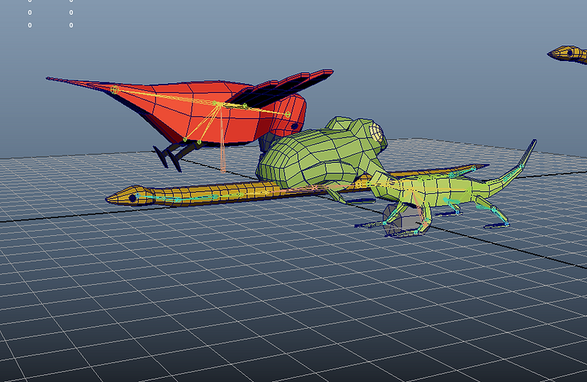 For this group project, on the more technical side: I created rigs, fixed weight painting issues, transferred or integrated animations on to rigs, and edited UVs for lightmaps.